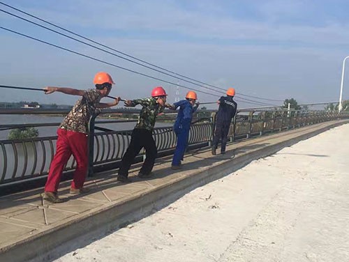 (三)沿鐵路抬運(yùn)電桿需休息或停留時(shí),嚴(yán)禁將電桿放在軌道上或路基邊道的里側(cè)。通過(guò)鐵路橋梁時(shí),經(jīng)鐵路橋駐守人員的同意。
